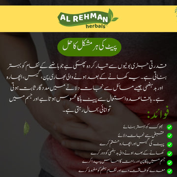 شفاء ہاضمہ ایک ماہرانہ تیار کردہ ہربل فارمولہ ہے جو ہاضمے کی خرابی کو موثر طریقے سے دور کرتا ہے۔ یہ قدرتی جڑی بوٹیوں سے تیار کیا گیا ہے جو قبض، تیزابیت، گیس اور پیٹ کے پھولنے جیسے مسائل کو کم کرتا ہے اور معدے کو صحت مند بناتا ہے۔ مکمل طور پر کیمیکل فری اور محفوظ، یہ دوا ہاضمے کی طاقت کو قدرتی طور پر بہتر بناتی ہے۔ کھانے کے بعد نیم گرم پانی کے ساتھ ایک چمچ استعمال کرنے سے بہترین نتائج حاصل ہوتے ہیں۔